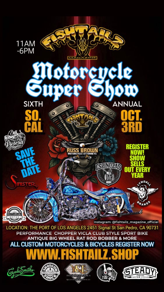 PHOTOGRAPHY/VIDEO RELEASE: FISHTAILZ MAGAZINE reserves the right to photograph, video tape, film or reproduce in any medium, and entry for any futureuse, at no compensation to the entry owner or participant. Upon entering the event, the entrant surrenders all claims. SAFETY: All fire regulations must be followed to the letter, or be subject to disqualification and barred from future events. All gas caps must be taped closed. All batteriesmust be disconnected and terminal posts taped. Gas level must be under a quarter tank. No entry can start their vehicle during show hours. Entrant will be held fully responsible and liable for any damages that may occur form movement of said vehicle. As an entrant in a FISHTAILZ MAGAZINE event, By making this purchase I hereby agree to the above stipulations and regulations set foreth and fully understand my responsibilities.